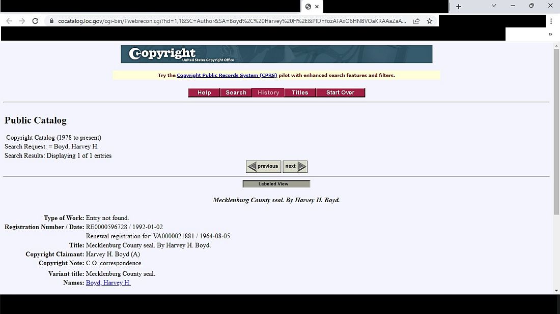 Mr. H. Harvey Boyd copyrighted his work with the United States Copyright Office in Washington, DC. Today, he has exclusive permission from Mecklenburg County Officials to offer his design to the public for sale. No other individual -- including County Officials -- have this exclusive right!